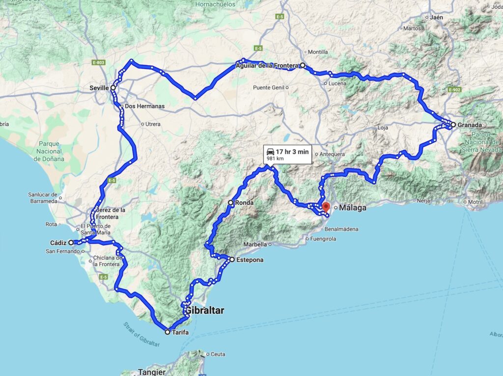 The mountain roads in Andalusia are entertaining and it is far between other vehicles.